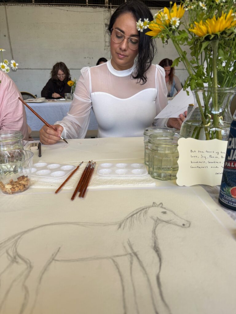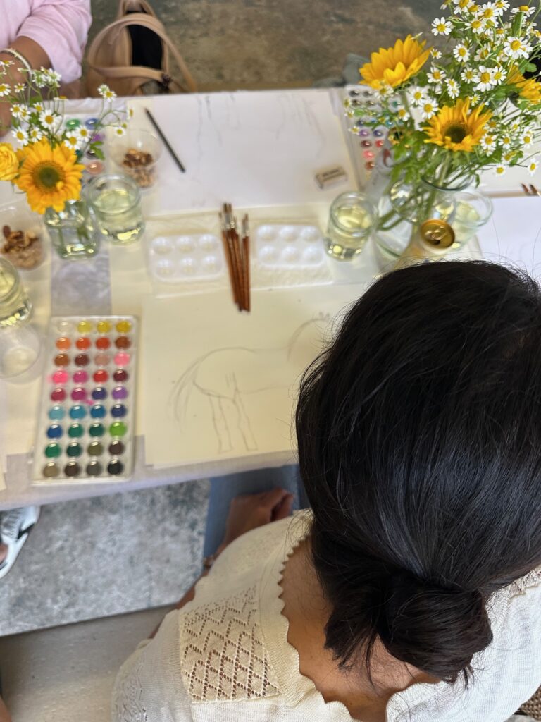 As I sat with my sketchpad in hand, surrounded by great people, creativity flowed freely. Conversations sparked easily, laughter echoed across the field, and the horses seemed to mirror our calm energy. It was more than an art class—it was a gathering of community, creativity, and connection.